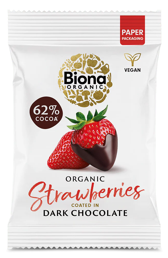 Bucura-te de gustul deosebit al Capsunilor invelite in ciocolata neagra Biona, o combinatie armonioasa intre ciocolata bogata si dulceata fructelor. Datorita procesului de liofilizare, capsunile isi pastreaza aroma naturala, culoarea vie si proprietatile nutritive. Acest produs este realizat cu ciocolata certificata Fairtrade, sustinand astfel comunitatile agricole si practicile comerciale etice.