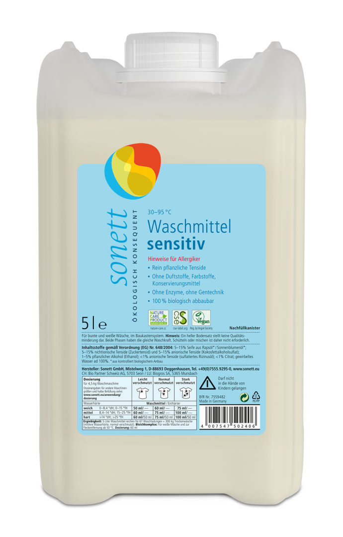 Un detergent ecologic neutru, fara parfumuri sau uleiuri esentiale, pentru haine albe si colorate din bumbac, in, canepa, sau mixturi de tesaturi. Ingredientele sunt biodegradabile si prietenoase cu pielea. Formula speciala care face fata spalarilor, inclusiv cand duritatea apei este ridicata. Spala la temperaturi cuprinse intre 30-95° C. Nu este recomandat pentru lana si matase.