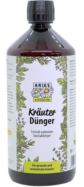 Fertilizant lichid ecologic NPK 2-0.2-4 cu actiune rapida pentru o nutritie echilibrata a plantelor aromatice din casa si gradina.