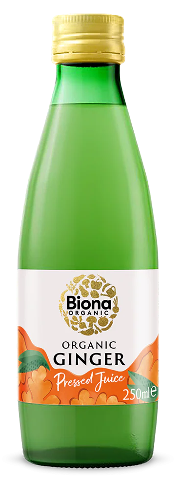 Sucul de ghimbir Biona este 100% obtinut din ingrediente organice fara adaos de zahar. Acest suc de ghimbir aromat si puternic este stors din ghimbir organic, perfect pentru a-l adauga in sucuri, piureuri si marinate. Dilueaza-l simplu in apa fierbinte pentru o bautura revigoranta.